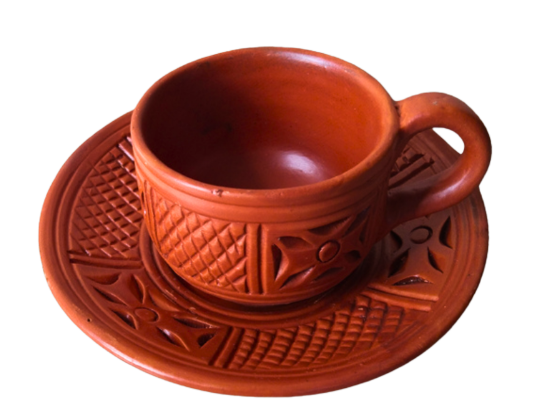 ঐতিহ্যবাহী পোড়ামাটির কারুকাজ করা চায়ের কাপ-পিরিচ মাত্র ১৬০ টাকা