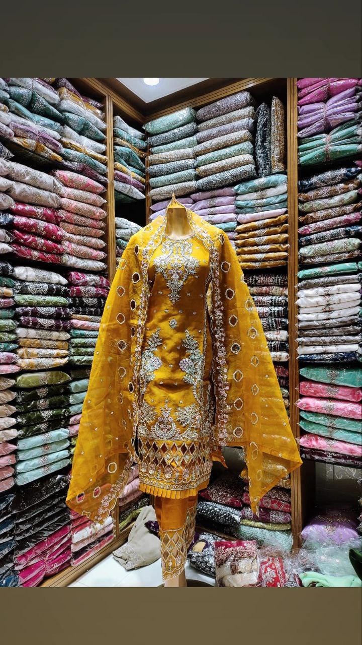 ✔ কামিজ – হাই-শাইন অরগানজা ফ্যাব্রিকে ভাইরাল ডিজাইন কাট