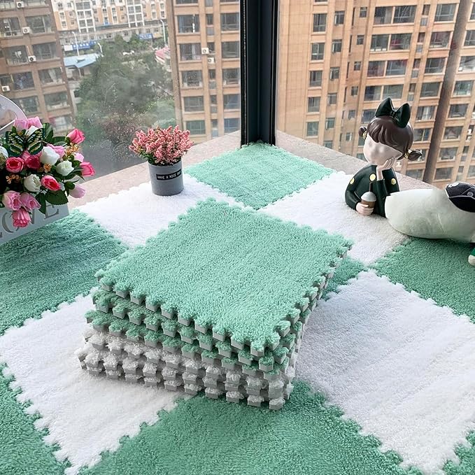 Plush Foam Floor Tiles,Interlocking Foam Mat for Playroom,Square Puzzle Floor Tiles,Carpet Rug,Home Decor,1×1